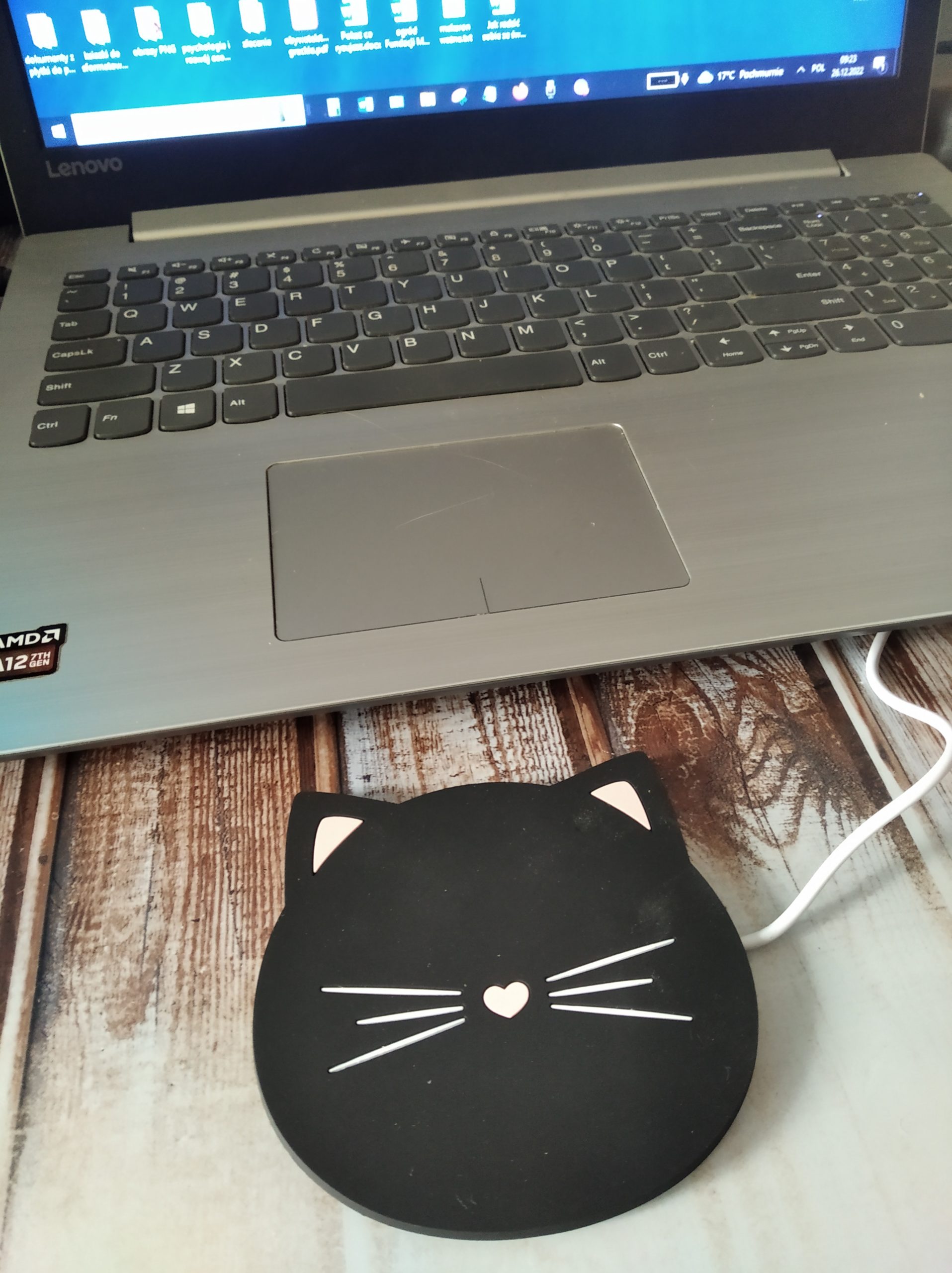 Ostatnio dostałam prezent niemal idealny, czyli podkładka grzewcza na USB. Podłączam do kompa, kładę na niej kubek z kawą i gdy pochłonie mnie praca, moja kawa nadal pozostanie ciepła. Koniec z piciem zimnej kawy!